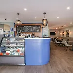 Cozinha totalmente equipada, equipada com microondas, chaleira elétrica e refrigerador, é indicada para fins de autoatendimento.